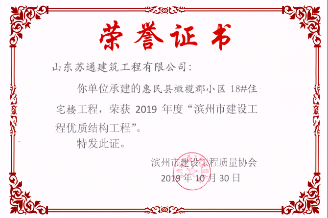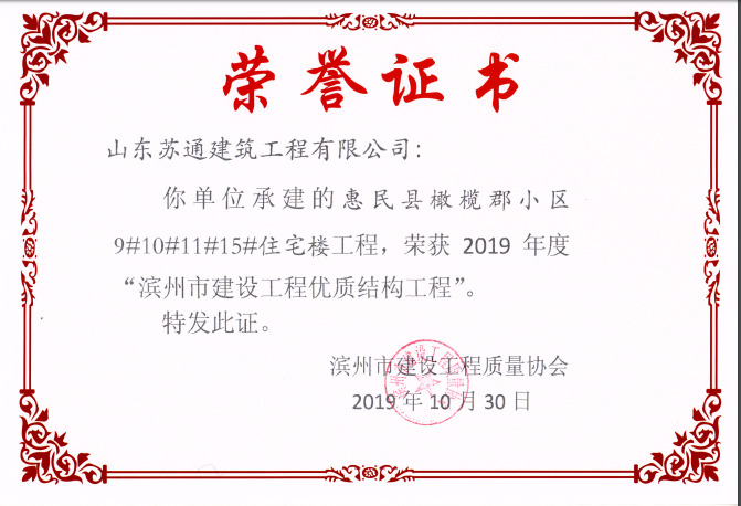 山東蘇通建筑工程有限公司,創(chuàng)建于2009年8月。目前擁有房屋建筑工程施工總承包壹級、市政公用工程施工總承包叁級、水利水電工程施工總承包叁級資質(zhì),同時(shí)還具有建筑裝修裝飾工程專業(yè)承包貳級、消防設(shè)施工程專業(yè)承包貳級、鋼結(jié)構(gòu)工程專業(yè)承包叁級、建筑機(jī)電安裝工程專業(yè)承包叁級等專業(yè)承包資質(zhì)。 公司總部坐落于山東省濱州市濱城區(qū)黃河十二路877號,現(xiàn)有辦公面積約2000平方米,機(jī)構(gòu)設(shè)黨支部工會辦公室、總經(jīng)理辦公室、綜合辦公室、工程管理部、經(jīng)營預(yù)算部、資產(chǎn)財(cái)務(wù)部、材料設(shè)備部、運(yùn)行管理部、法律事務(wù)部等多個(gè)職能部門。公司管理體系已經(jīng)通過了GB/T 19001及GB/T 50430質(zhì)量管理體系、GB/T 24001環(huán)境管理體系(EMS)、GB/T 28001職業(yè)健康安全管理體系(OHSMS)等體系的認(rèn)證。 公司承建完工了濱州市建大教師之家、建大清怡苑、香格里拉水岸綠城住宅小區(qū)、雙泰建大城、曲阜崇德公館住宅小區(qū)、北海新區(qū)御景藍(lán)灣住宅小區(qū)、沾化德榮國際華城住宅小區(qū)、惠民橄欖郡住宅小區(qū)等工程項(xiàng)目,目前在建工程項(xiàng)目有:濱州市頤高國際電子商務(wù)產(chǎn)業(yè)園住宅小區(qū)項(xiàng)目、濱州市東盛國際項(xiàng)目、高新區(qū)建大中央華府住宅小區(qū)項(xiàng)目、濱州市融匯新里程住宅小區(qū)項(xiàng)目、濱州市建大秦皇壹號住宅小區(qū)項(xiàng)目、濱州市森林花...